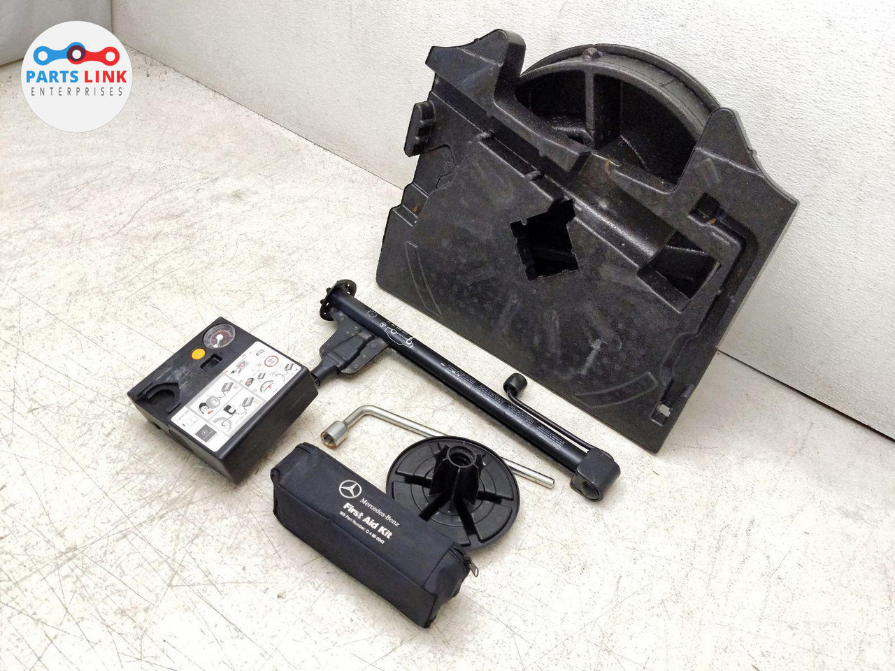 2009-12 MERCEDES SL63 AMG TRUNK LIFT JACK TOOL KIT COMPRESSOR BRACKET SET R230 SL060420-008