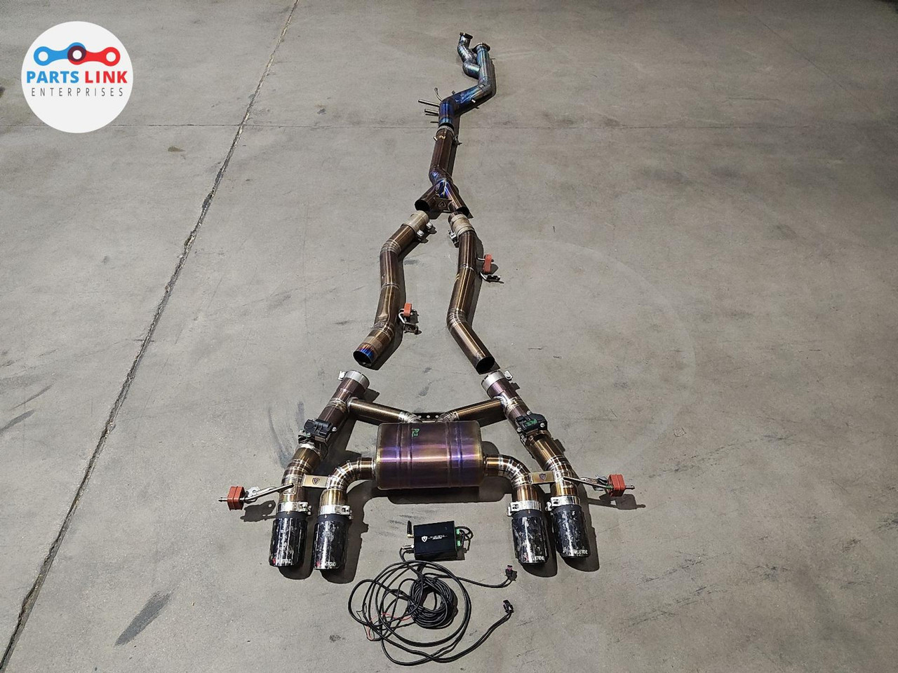 Valvetronic titanium exhaust with carbon fiber tips. Some pipes have major dents and scratches and will need replacementMuffler does have loose dirt